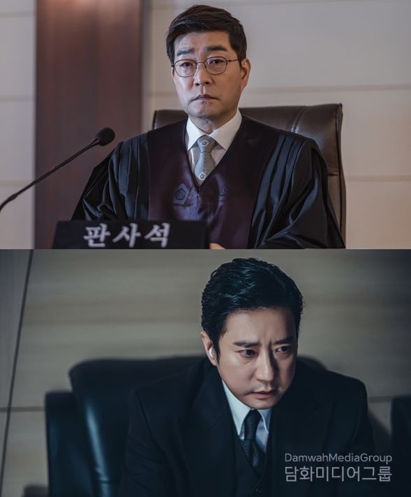 공개된 사진 속에는 전혀 다른 세상 속에 몸을 담고 있는 이들의 모습이 담겨있다. 법복을 입고 있는 송판호와 검은 수트를 입고 있는 김강헌에게서는 극과 극의 카리스마가 느껴지고 있는 것은 물론 강렬하게 대비되는 두 사람의 간극이 임팩트를 선사해 더욱 호기심을 자극한다.