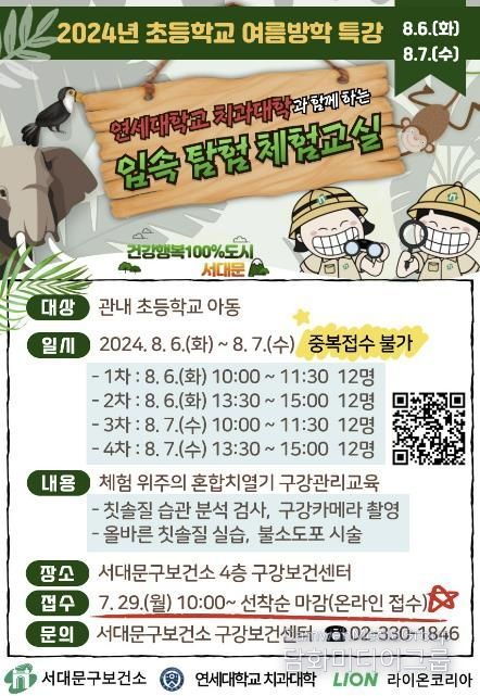 1회에 12명씩 총 48명의 관내 초등학생들이 무료로 참여할 수 있으며 지난해에 이어 올해도 연세대학교 치과대학 예방치과학교실(김백일 교수)과 연계해 진행한다.