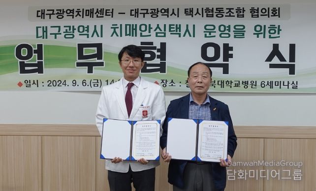 시민행정신문 이세훈 기자 | 대구광역치매센터는 9월 6일 대구광역시 택시협동조합협의회와 치매친화기업 지정을 위한 업무협약을 체결했다.