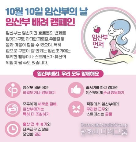 임산부의 날은 임신과 출산을 장려하고, 임산부를 배려하는 사회 분위기를 만들기 위해 2005년 제정됐다. 10월 10일은 풍요와 수확의 달인 10월과 임신기간 10개월을 의미한다.