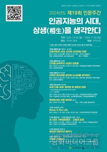 시민행정신문 기자 | 구미시 평생학습원은 계명대학교 인문도시 지원사업단과 함께 10월 28일부터 11월 3일까지 ‘인공지능의 시대, 상생을 생각하다’를 주제로 제19회 인문주간을 운영한다. 이번 인문주간은 ‘인공지능 시대에서 본 과거와 미래’등 최신 트렌드를 반영한 다양한 프로그램으로 인문학의 대중화와 시민들의 소양 함양을 도모한다.