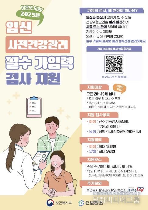 2024년 보건복지부 주관 시행한 ‘임신 사전건강관리 지원사업’은 임신과 출산의 고위험 요인을 조기에 발견해 관리할 수 있도록 필수 가임력 검사비를 지원하는 사업이다.