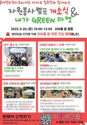 시민행정신문 강갑수 기자 | 부산 동래구자원봉사센터는 오는 9월 20일 오전 10시 동래센트럴파크하이츠 2차 아파트 단지 내에서 ‘좋은이웃 명륜 자원봉사캠프’개소식을 개최한다고 밝혔다.