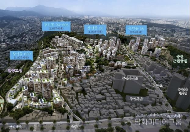2024년 11월 신속통합기획이 확정된 창신동 23-606번지(143,148.7㎡)와 629번지(92,190.8㎡) 일대에는 지상 최고 29층, 4,542세대 규모의 주택단지가 들어선다. 원지형에 순응한 테라스형 단지, 한양도성 경관과 어우러지는 스카이라인, 낙산-동대문 보행축 연계 등 도시경관과 생활환경을 모두 고려해 세심하게 설계된다.