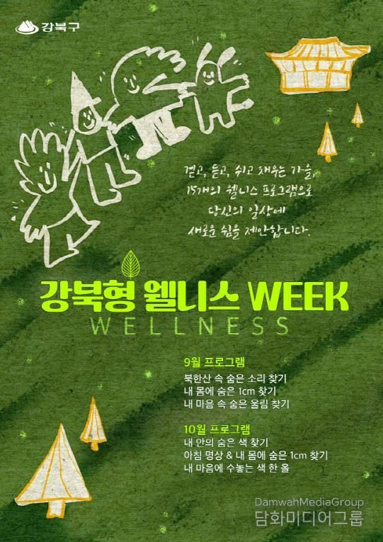 시민행정신문 강갑수 기자 | 서울 강북구는 9월부터 10월까지 '강북형 웰니스 WEEK'를 운영한다고 밝혔다. 이번 사업은 올해 수립한 ‘강북형 북한산 웰니스 관광 활성화 계획(2025~2030)’의 후속 단계로, 구민과 관광객이 단순한 관광을 넘어 몸과 마음의 회복과 치유, 쉼의 가치를 누릴 수 있도록 기획된 체험형 프로그램이다.