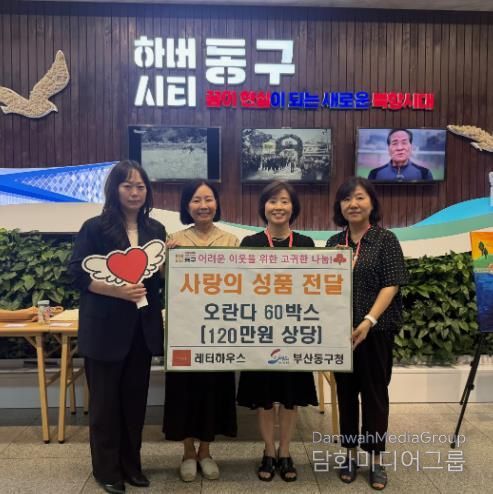 시민행정신문 기자 | 리더스손해사정 및 (주)레터스 레터하우스는 지난 17일 오란다 4개입 60상자(120만원 상당)를 부산 동구에 기탁했다.
