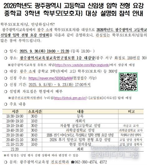 광주 고입 전형 관련 정보는 광주진로진학지원센터에서 확인할 수 있다.
