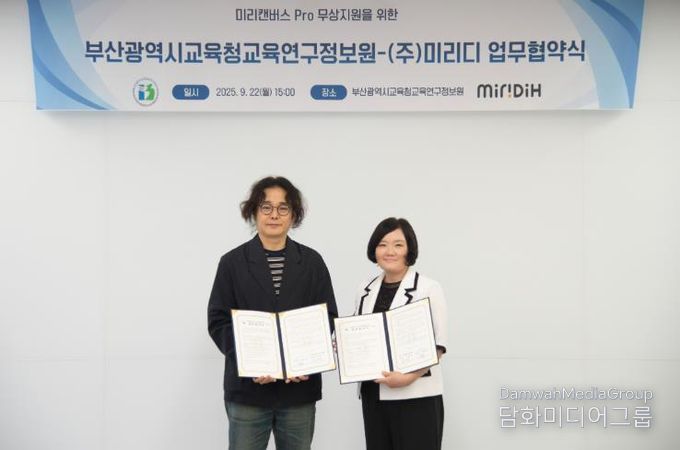 시민행정신문 기자 | 부산광역시교육청교육연구정보원은 지난 22일 오후 교육연구정보원 회의실에서 (주)미리디(대표 강창석)와 업무협약을 체결했다고 밝혔다.