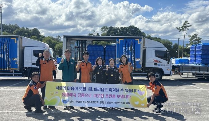 시민행정신문 강갑수 기자 | 강릉시의 가뭄 상황 극복을 돕고자 양평소방서·양평의용소방대연합회·양평소방정책자문위원회 일동은 23일 강릉시에 생수(2L) 9,840병을 기탁했다.