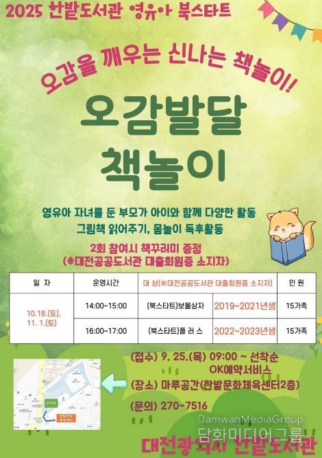 시민행정신문 강갑수 기자 | 대전 한밭도서관은 상반기에 이어 하반기에도 영유아 독서문화 프로그램 ‘북스타트’를 운영한다고 24일 밝혔다. 대상은 지역 내 3세부터 7세 아동이다.