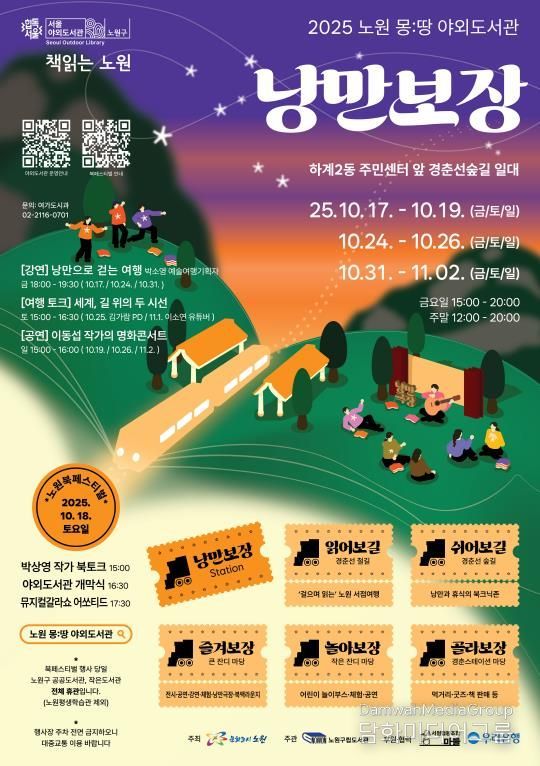시민행정신문 이존영 기자 | 서울 노원구는 올가을, 시민들의 일상 속에 특별한 낭만을 불어넣는 ‘노원 몽:땅 야외도서관 : 낭만보장(場)’을 개최한다고 밝혔다.