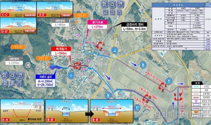 함라지구는 집중호우 시 침수 피해가 발생하고, 산지토사 유출과 노후 제방 등으로 재해 위험이 상존하는 지역이다.