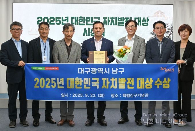 시민행정신문 강갑수 기자 | 대구 남구는 지난 23일 서울 용산구 백범김구기념관 컨벤션홀에서 열린 '2025 대한민국 자치발전 대상'에서 기초부문 대상을 수상했다.