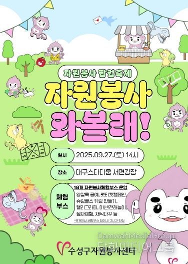 시민행정신문 기자 | 대구 수성구자원봉사센터(센터장 이기덕)는 오는 27일 대구스타디움 서편광장에서 '자원봉사 팝업축제, 자원봉사 와볼래'를 개최한다. 이번 축제는 지역 주민들이 일상 속에서 자원봉사를 쉽게 체험하고, 자연스러운 참여 문화를 확산하기 위해 마련됐다.