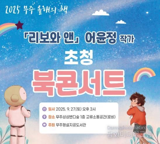 어윤정 작가는 2025 무주 올해의 책(어린이 분야)으로 선정된 “리보와 앤” 집필 작가로, 이날 콘서트에서는 작가와 만나 작품에 얽힌 다양한 이야기를 나눌 예정이다.