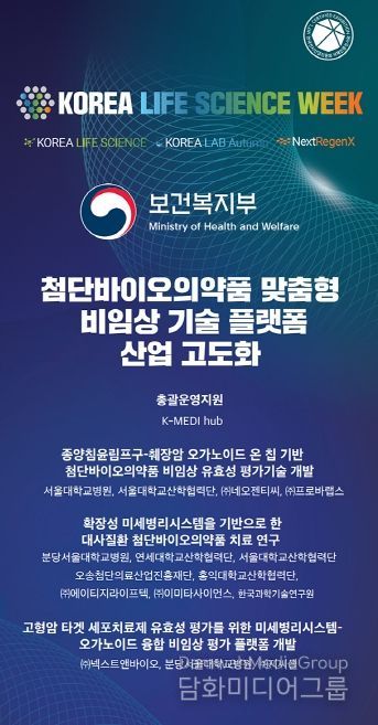 한편, K-MEDI hub는 보건복지부 ‘질환모델 기반 첨단바이오의약품 비임상 유효성 평가기술 개발 사업’의 총괄 운영기관으로 동물실험 대체 수요에 대응하고 연구개발 성과가 사업화로 이어지도록 지원하고 있다.
