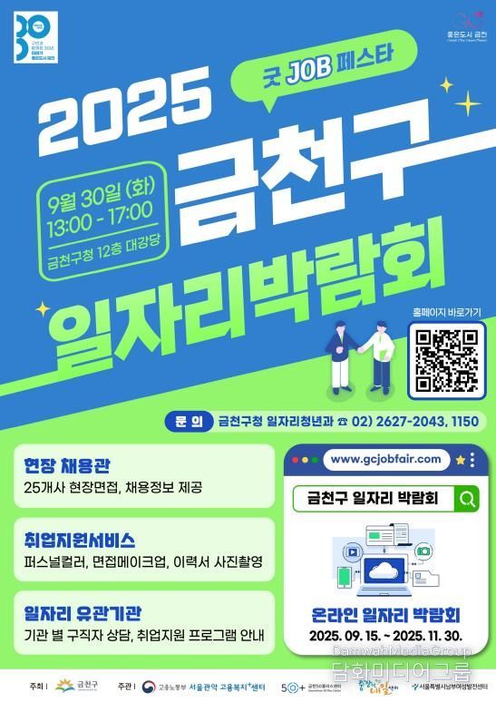시민행정신문 이존영 기자 | 금천구는 오는 9월 30일 구직자에게는 좋은 일자리를, 기업에게는 우수 인재 채용의 기회를 제공하기 위해 ‘2025년 굿 JOB 페스타 금천구 일자리박람회’를 개최한다고 밝혔다.