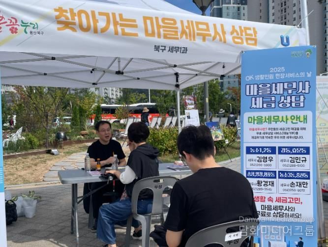 시민행정신문 강갑수 기자 | 울산 북구는 26일 송정복합문화센터 앞 대리근린공원에서 열린 OK생활민원 현장서비스의 날에서 찾아가는 마을세무사 상담의 날을 운영했다.