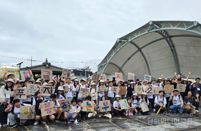 특히 기후수비대 활동 티셔츠를 착용한 학생들이 각자 준비한 종이 상자 글자를 이어 붙여‘2025 다같이 지구력 기후수비대, 행동하는 우리가 푸른 지구를 지키는 진짜 힘!’이라는 문구를 완성하며 캠페인의 의미를 되새겼다.