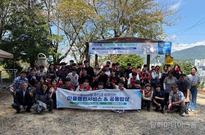 시민행정신문 강갑수 기자 | 부산진구 가야1동 엄광마을 주민협의회(회장 정성호)는 새뜰마을사업의 일환으로 동의대학교 교수와 학생들로 구성된 자원봉사동아리 ‘동의하자팀’과 합동으로 9월 27일 마을 환경정비 활동을 펼쳤다.