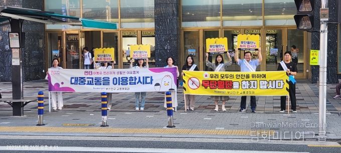 시민행정신문 강갑수 기자 | 부산진구는 추석을 맞아 24일, 25일 이틀에 걸쳐 보행자 통행량이 많은 부전시장과 서면롯데백화점 앞에서 ‘무단횡단 금지, 교통안전 캠페인’을 실시했다.