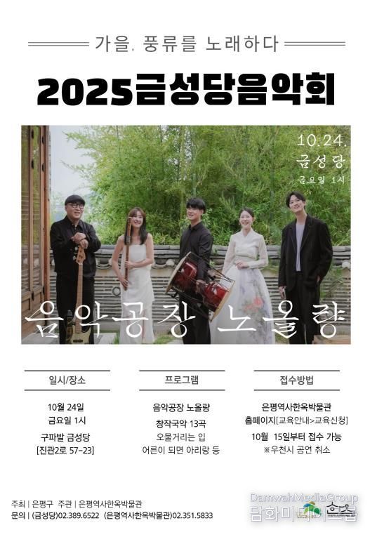 시민행정신문 이존영 기자 | 서울 은평구는 10월 24일 오후 1시 은평뉴타운 아파트 숲 사이에 자리한 금성당에서 ‘음악회’를 개최한다고 밝혔다.