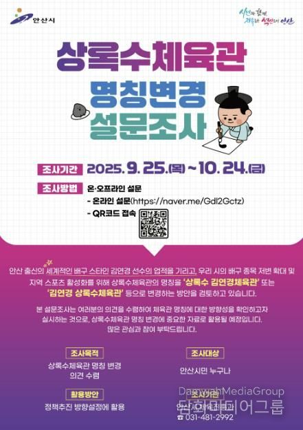 시민행정신문 강갑수 기자 | 안산시는 내달 24일까지 ‘상록수체육관’ 명칭 변경 설문조사를 실시한다고 30일 밝혔다.