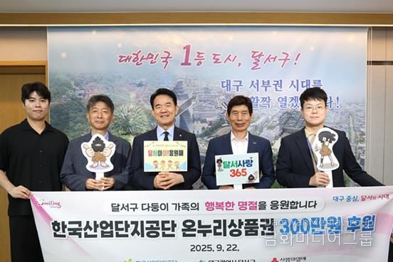 시민행정신문 강갑수 기자 | 대구 달서구는 한국산업단지공단으로부터 다둥이 가족 지원을 위해 온누리상품권 300매(300만 원 상당)를 기탁받았다고 24일 밝혔다.