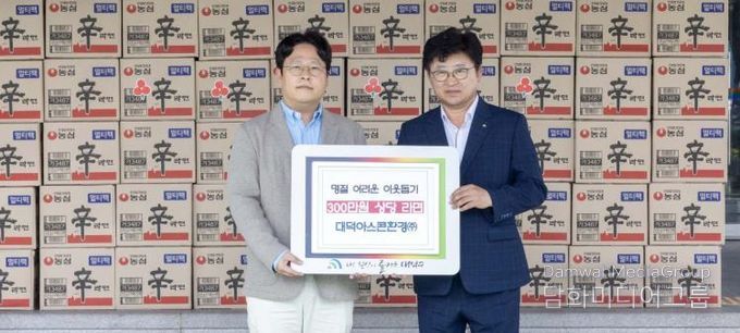 최충규 대덕구청장은 “지역 취약계층을 위해 따뜻한 마음을 전해주신 대덕아스콘환경㈜에 깊이 감사드린다”며 “이번 나눔이 명절에 사회적 고립 위험이 큰 1인 가구에 큰 힘이 될 것”이라고 전했다.