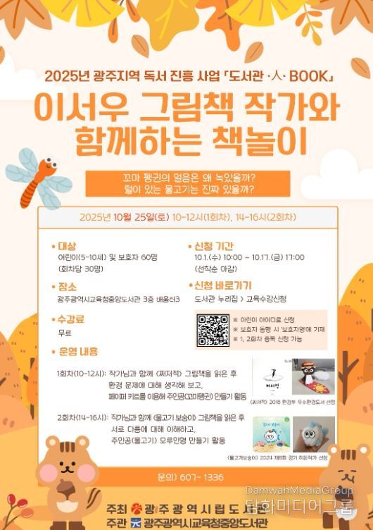 시민행정신문 기자 | 광주광역시교육청중앙도서관은 오는 10월 25일 본관 3층 배움터3에서 ‘이서우 그림책 작가와 함께하는 책놀이’ 프로그램을 운영한다.
