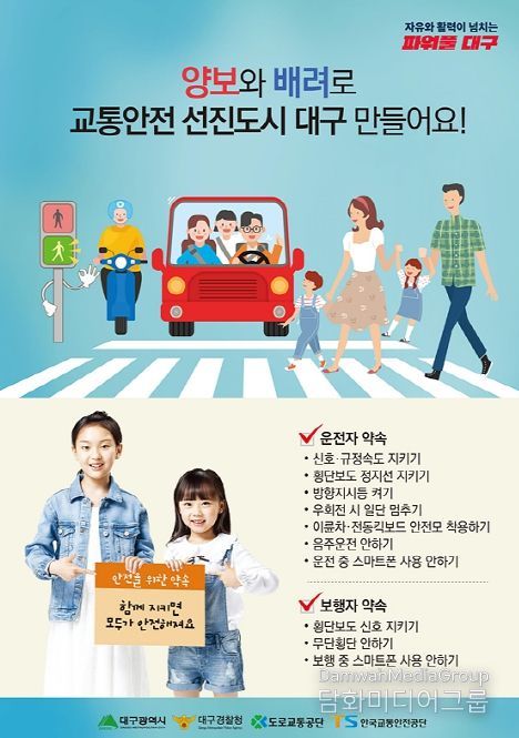 이번 캠페인에는 대구시, 대구경찰청, 대구동구청, 한국도로교통공단 대구지부, 한국교통안전공단 대구경북본부, 시민단체 등 50여 명이 참여한다.