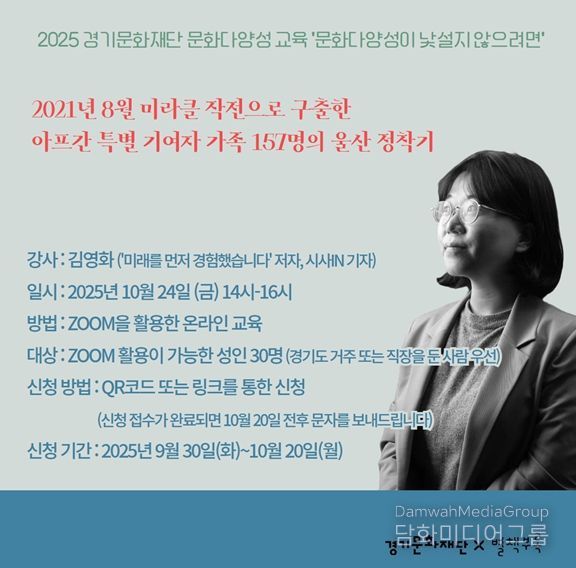 시민행정신문 기자 | 다가오는 10월 24일, 경기문화재단은 문화다양성 가치를 이해하고 관련 사례를 탐구하기 위한 문화다양성 온라인 교육 〈미래를 먼저 경험했습니다〉를 실시한다.