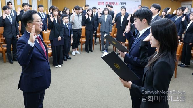 이장우 시장은 “대전시 공무원으로 임용된 것을 진심으로 축하한다”라면서 “앞으로 동료들과 협업하고 시민들과 적극적으로 소통하며 맡은 바 최선을 다하는 책임 있는 공직자가 되어주길 바란다”라고 당부했다.