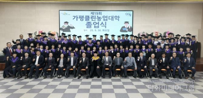 시민행정신문 강갑수 기자 | 가평군은 9월 30일 가평군농업기술센터에서 ‘제19회 가평클린농업대학 졸업식’을 열었다. 이날 행사에는 서태원 군수를 비롯해 지역 기관·단체장, 내빈, 졸업생과 가족 등 100여 명이 참석해 졸업을 축하했다.