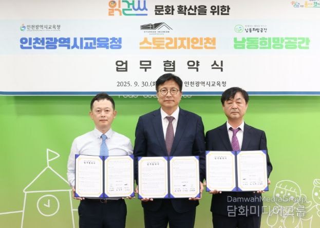 시민행정신문 조규호 기자 | 인천광역시교육청은 9월 30일 ㈜월미하이랜드(대표 이덕성) 스토리지인천, 남동희망공간(대표 유병희)과 함께 ‘읽걷쓰’ 문화 확산을 위한 업무협약을 체결했다.