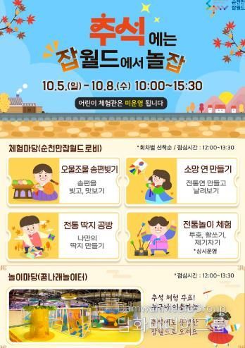 시민행정신문 강갑수 기자 | 순천시는 오는 10월 5일부터 8일까지 추석 연휴를 맞아 순천만잡월드에서 '추석에는 잡월드에서 놀JOB~'이벤트를 개최한다.