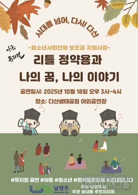 시민행정신문 기자 | 남양주시는 오는 10월 18일 조안면 다산생태공원에서 아동·청소년 대상 가족뮤지컬인 ‘리틀 정약용’을 선보인다.