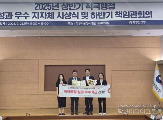 시민행정신문 강갑수 기자 | 강원특별자치도가 행정안전부 주관 ‘2025년 상반기 지방자치단체 적극행정 성과 점검’에서 전국 광역자치단체 중 유일하게 우수기관으로 선정돼 행정안전부 장관 표창을 수상했다.