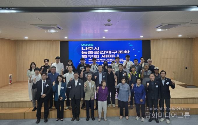 시민행정신문 강갑수 기자 | 나주시의회 의원연구단체 ‘농촌공간 재구조화 과정 연구회’(대표의원 김강정)가 주최한 세미나가 지난 29일 빛가람동 동신대한방병원에서 읍면동 주민들과 유관기관 단체장, 언론인을 비롯한 관계자 등이 참석한 가운데 개최됐다.
