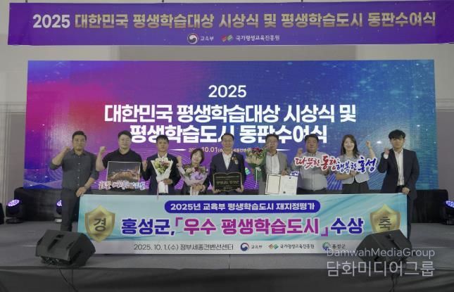 시민행정신문 강갑수 기자 | 홍성군은 지난 1일 정부세종컨벤션센터에서 열린 ‘2025 대한민국 평생학습대상 및 평생학습도시 동판수여식’에서 교육부장관 기관표창을 수상하며, 전국 평생학습 활성화를 선도하는 도시로 위상을 높였다.