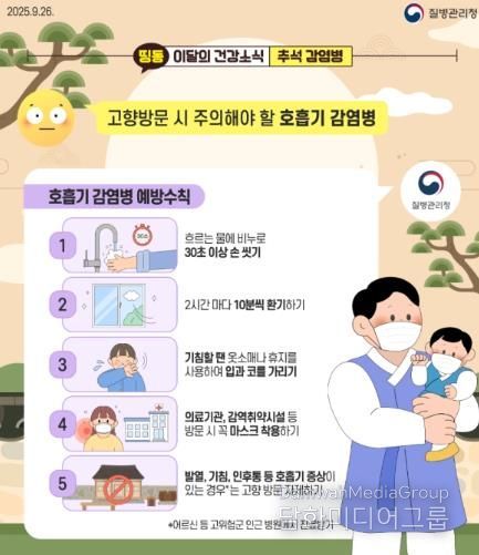 울주군보건소 관계자는 “소중한 가족을 만나기 전에 스스로 건강 상태를 점검하고 감염병 예방수칙을 실천하는 것이 무엇보다 중요하다”며 “어르신과 만성질환자를 위한 작은 배려가 큰 보호로 이어진다”고 말했다.