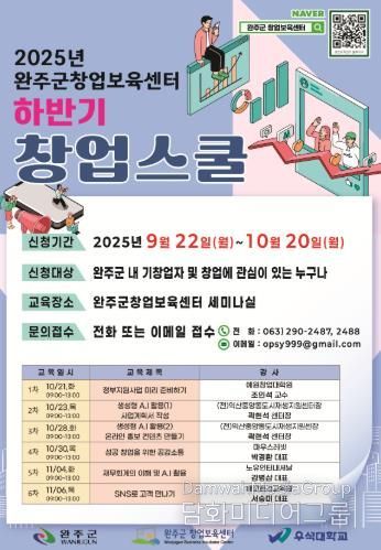 시민행정신문 강갑수 기자 | 완주군 창업보육센터가 관내 창업을 준비하거나 관심 있는 예비 창업자와 초기 창업자를 대상으로 창업스쿨 수강생을 모집하고 있다.