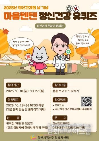 익산시는 정신건강의 날을 맞아 오는 10일부터 27일까지 '마음텐텐' 온라인 캠페인을 운영한다고 2일 밝혔다.