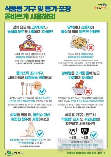 시민행정신문 기자 | 연제구는 구민들의 건강을 지키고 안전한 식생활 문화를 확산하기 위해 ‘식품용 기구 및 용기・포장 올바르게 사용해요!’ 홍보물을 제작했다.