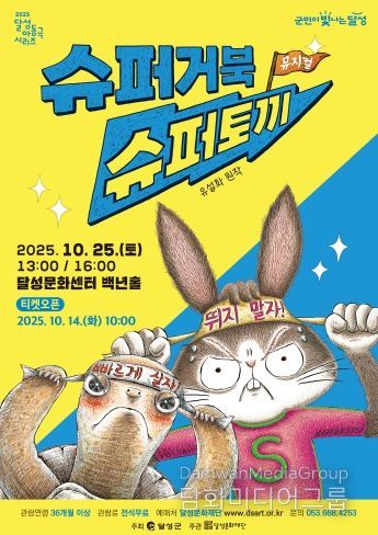 시민행정신문 기자 | 달성문화재단은 오는 25일 오후 1시와 4시, 달성문화센터 백년홀에서 ‘2025 달성 아동극 시리즈’의 다섯 번째 공연 ‘슈퍼거북 슈퍼토끼’를 개최한다고 밝혔다.