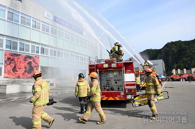 군청 재난안전상황실에서는 재난안전대책본부장인 심재국 평창군수가 주재해 실무부서와 유관기관별 협력·조치 방안에 대해 논의했으며, 현장훈련에서는 자위소방활동과 재난안전통신망(PS-LTE)을 통한 상황 보고·전파, 긴급구조통제단 가동, 통합지원본부 운영 등 재난대응 단계별 사고 수습 체계를 점검하는 데 중점을 뒀다.