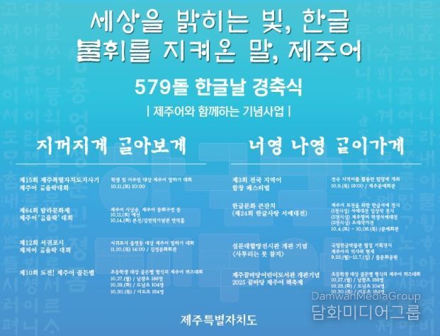 김인영 제주도 특별자치행정국장은 “한글은 우리 민족의 정신이자 문화의 뿌리, 제주어는 소중한 언어문화 유산”이라며 “이번 경축식을 통해 한글의 자부심을 되새기고 사라져가는 제주어에 대한 관심과 실천이 도민 생활 속에 자연스럽게 이어지도록 노력하겠다”고 말했다.