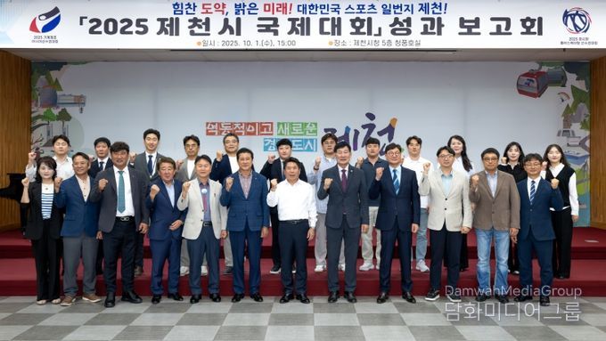 시민행정신문 강갑수 기자 | 제천시는 지난 1일 제천시청 5층 청풍호실에서 '2025년 제천시 국제대회'성과보고회를 개최했다. 보고회에는 김창규 제천시장, 박영기 제천시의회 의장, 김경석 대한롤러스포츠연맹 회장(이상 공동조직위원장), 장재돈 대한체조협회 고문과 안성국 제천시체육회장(집행위원장), 오재성 제천시체조협회장, 최호열 제천시롤러스포츠연맹회장(이상 공동 사무총장) 및 유관기관, 단체장 3명과 종목단체 임원 및 회원 50여 명이 참석했다.