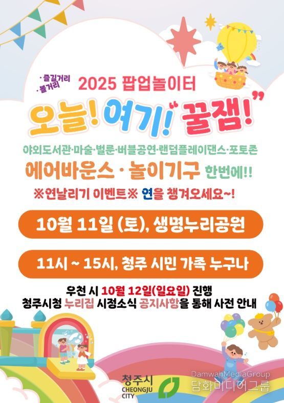 한편 시는 올해 △10월 18일 유기농복합단지 △10월 25일 무심천체육공원 △11월 1일 문암생태공원 등에서 세 차례의 팝업 놀이터를 추가로 운영할 계획이다.