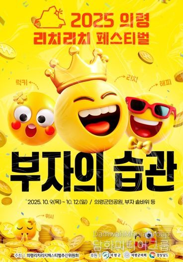 오태완 군수는 “이번 축제가 단순한 볼거리를 넘어, 부자의 습관을 체험하고 자신의 삶을 돌아보는 뜻깊은 계기가 되길 기대한다”며 “의령에서 건강과 행복, 사랑이 어우러진 좋은 기운을 느껴보시길 바란다”고 말했다.